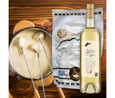 - 2 Pakete Käsefondue (400 g moitié-moitié) des Fondue-Weltmeisters Damien Raemy von der Käserei Au Palais du Fromage in Corbières (FR)